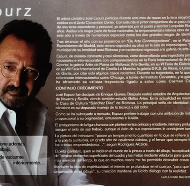 José Espurz, el pintor reinosano, viajero a todas partes, suele emplear los pinceles, a modo de cazamariposas, persiguiendo sueños y atrapando fantasías, al vuelo, en el espacio sutil de su mente sin horizontes, para fijarlos en el lienzo, cuidando de que no se pierda un ápice de su encanto. Tiene Espurz la habilidad del experto entomólogo que cuida de la delicada mariposa enmarcándola con la mayor veracidad posible. Y en esto, José Espurz es todo un cazador y transformador de sueños.
